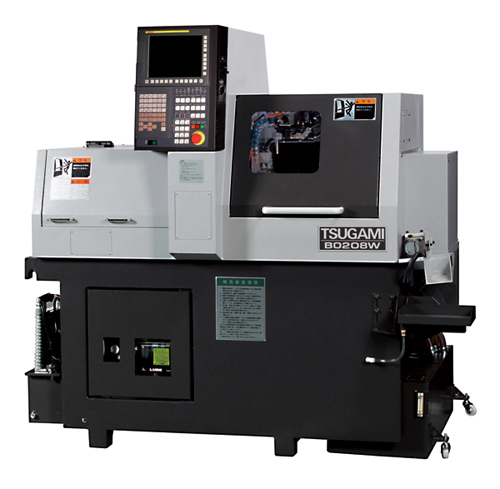 津上B0128W走心机、针对复杂零件一次加工成型,主要具有提高效率的优点,因为各个刀具轴均可单独动作,提升了同步加工协调能力,外径粗精加工可以一体、刀具扩展更丰富;主背轴完全独立加工,将复杂零件加工时间有效减少。针对复杂零件大批量生产比较适合。