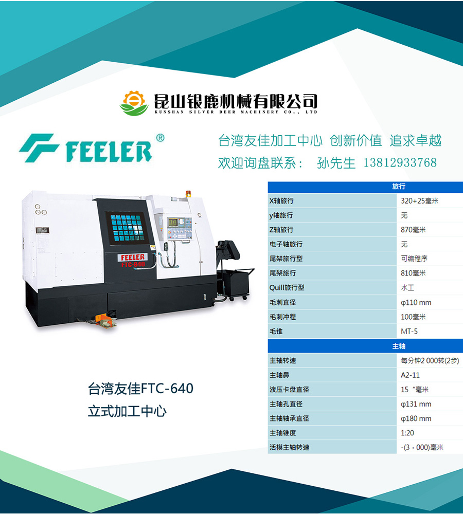 台湾友嘉FTC-640车床,采用整体斜背车床、刚性好;A2-11主轴鼻端、主轴配2段式变速齿轮箱传动、主轴转速2000rpm、主轴功率22/26KW;15寸卡盘、棒材通孔直径117.5mm;配可程式尾座;最大切削直径640mm,特别适合大型零件加工,例如铝合金轮毂等。